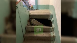 В многоэтажке на пр. Победы обрушилась часть лестницы