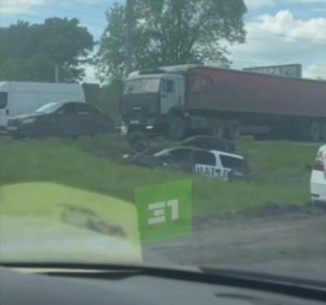 На выезде из Челябинска автомобиль вылетел с дороги