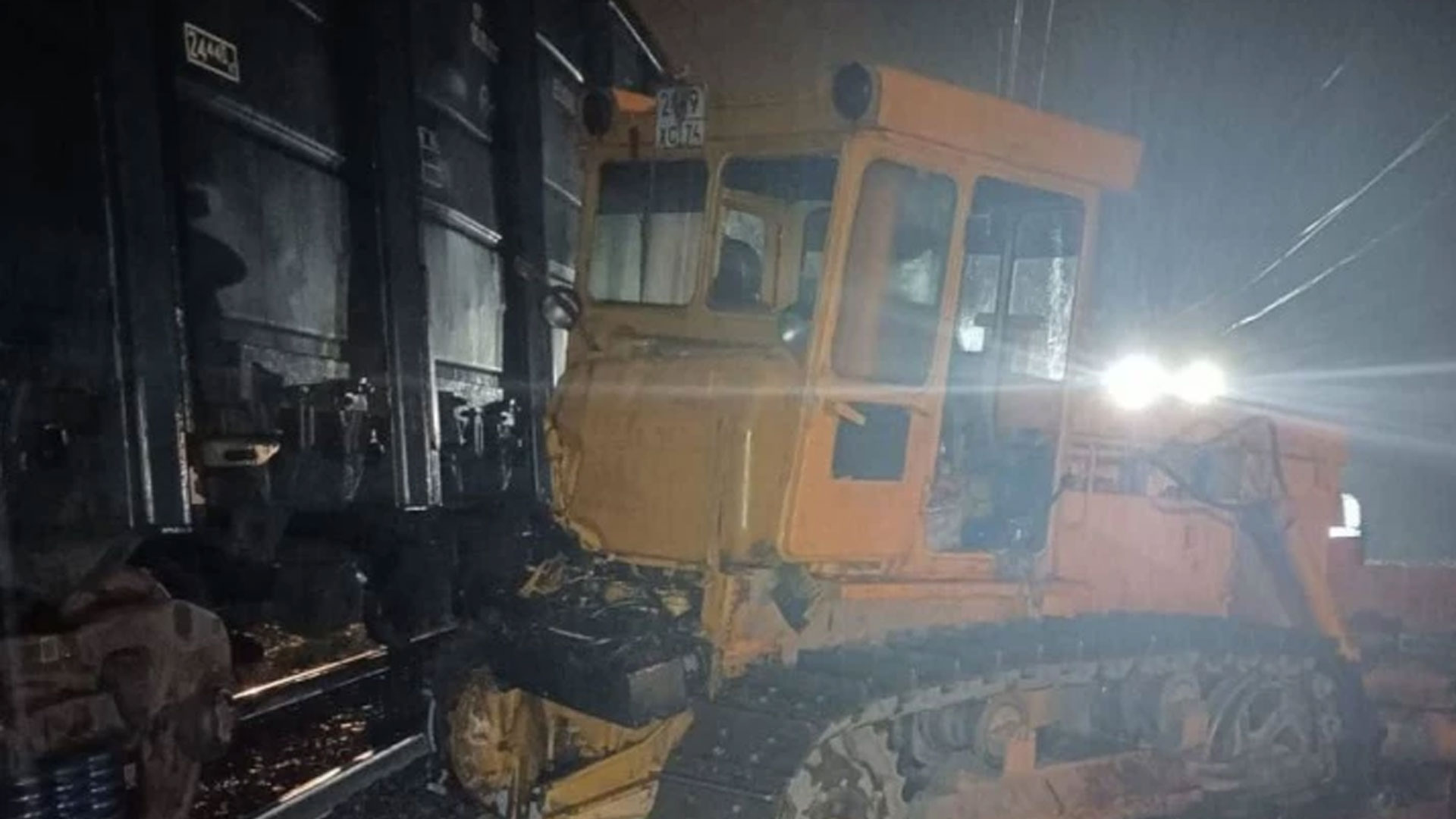 Под Миассом грузовой поезд столкнулся с бульдозером