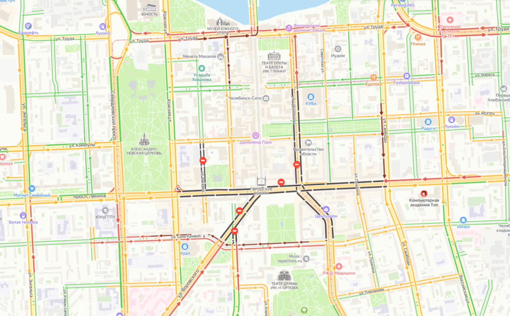 Центр Челябинска сковали пробки из-за репетиции Парада