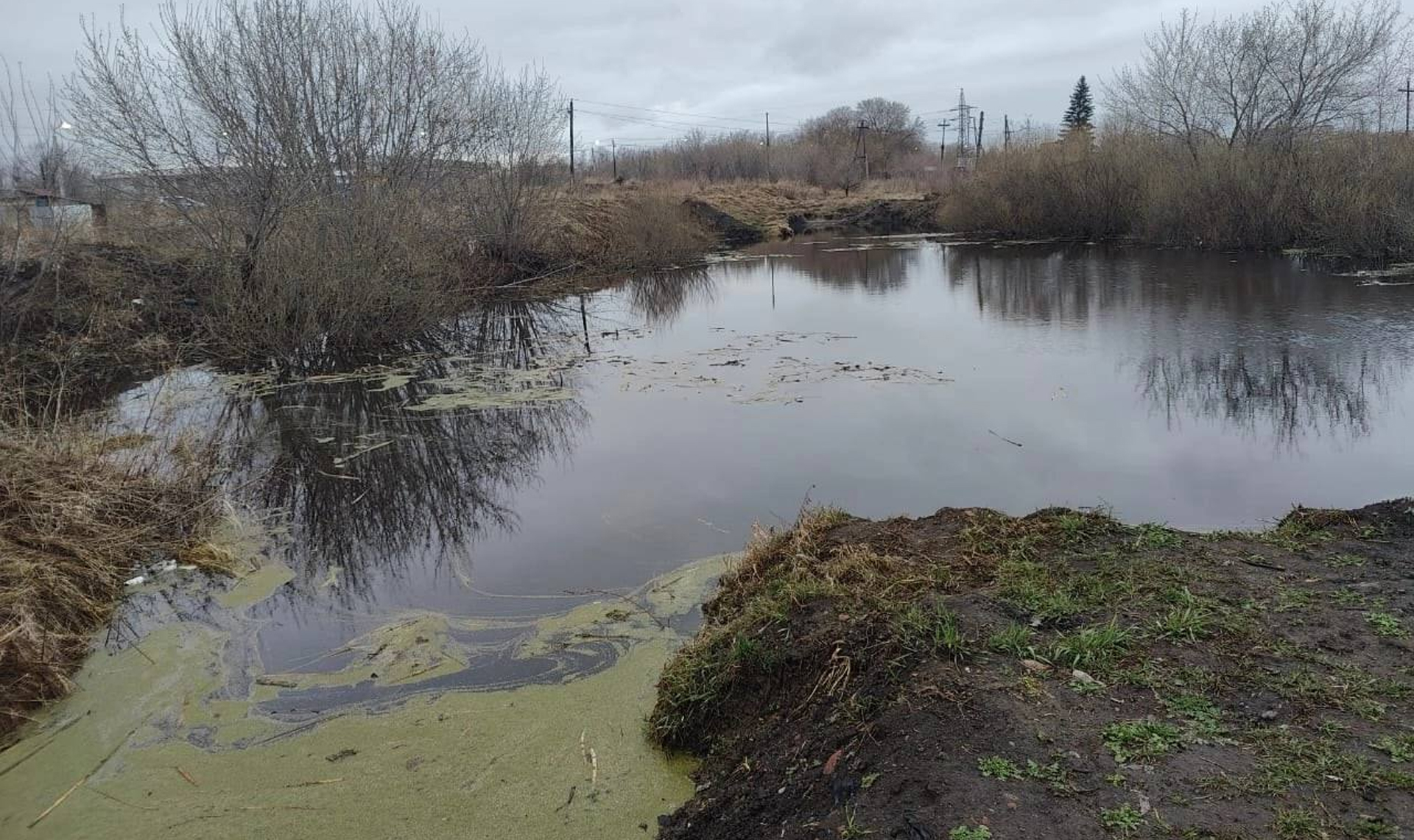 Переполненный водоём-испарительФото: telegram / Копейск (В)Теме