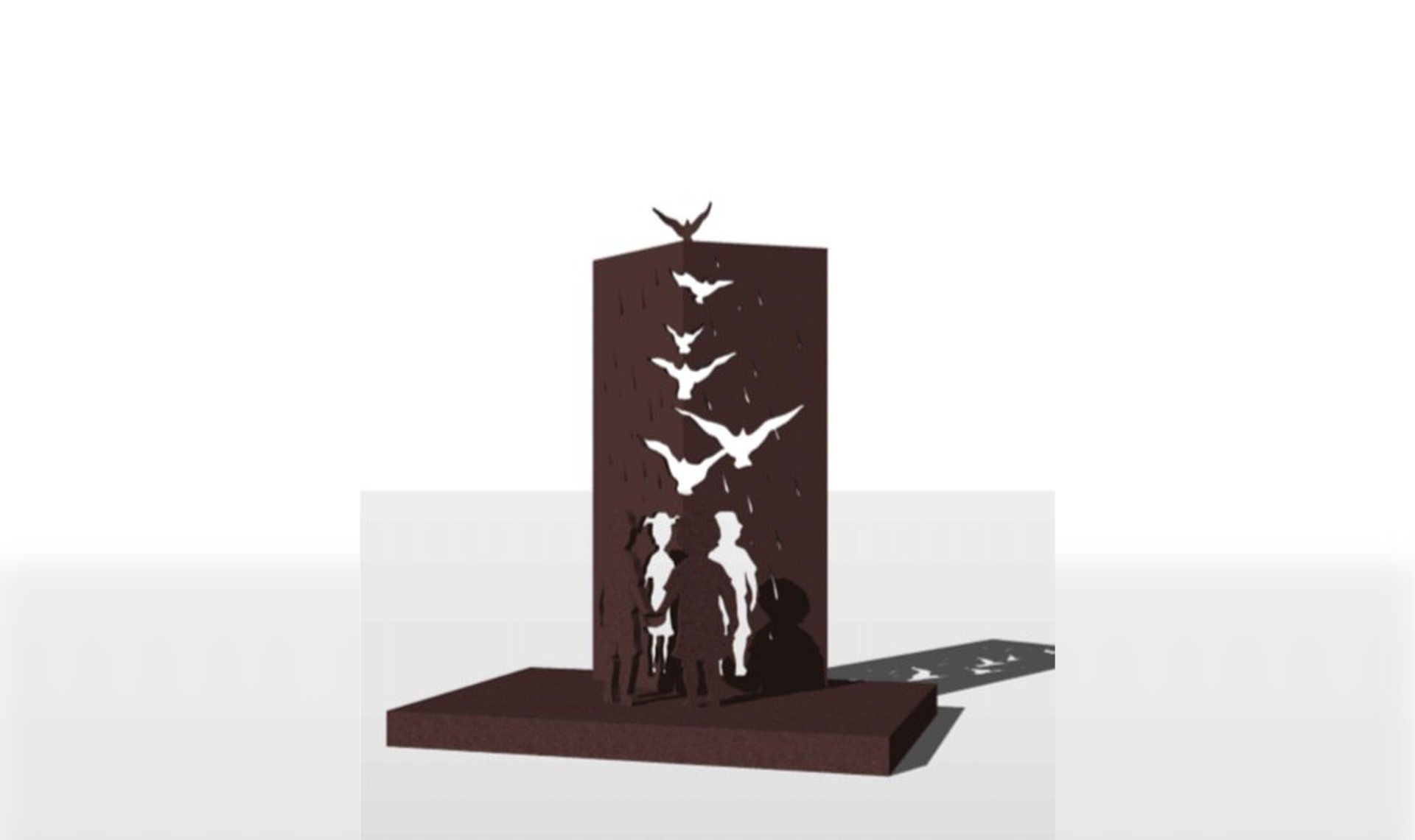 В Калининском районе появится стела памяти о пропавших детях и надежды на их возвращение. Композицию «ЖИВИ» установят в сквере на улице Кирова. Она представляет собой два металлических полотна, украшенных каплями слез. Силуэты детей плавно переходят в образ улетающих птиц.