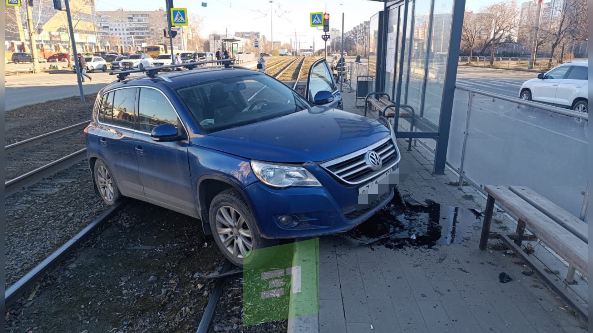 На проспекте Победы автомобилист врезался в трамвайную остановку