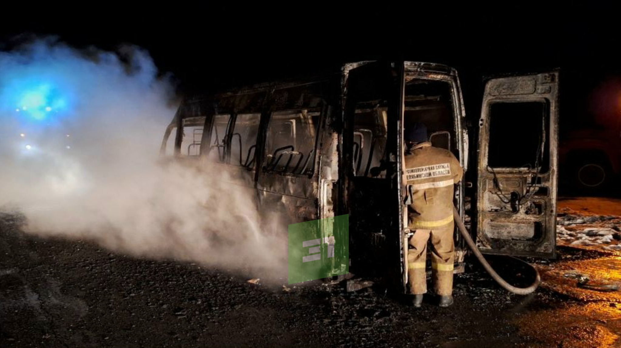 Маршрутка ехала ночью из Магнитогорска в Челябинск. Во время движения вспыхнули моторный отсек и салон. Водитель сразу остановился, шестеро пассажиров успели выбежать.