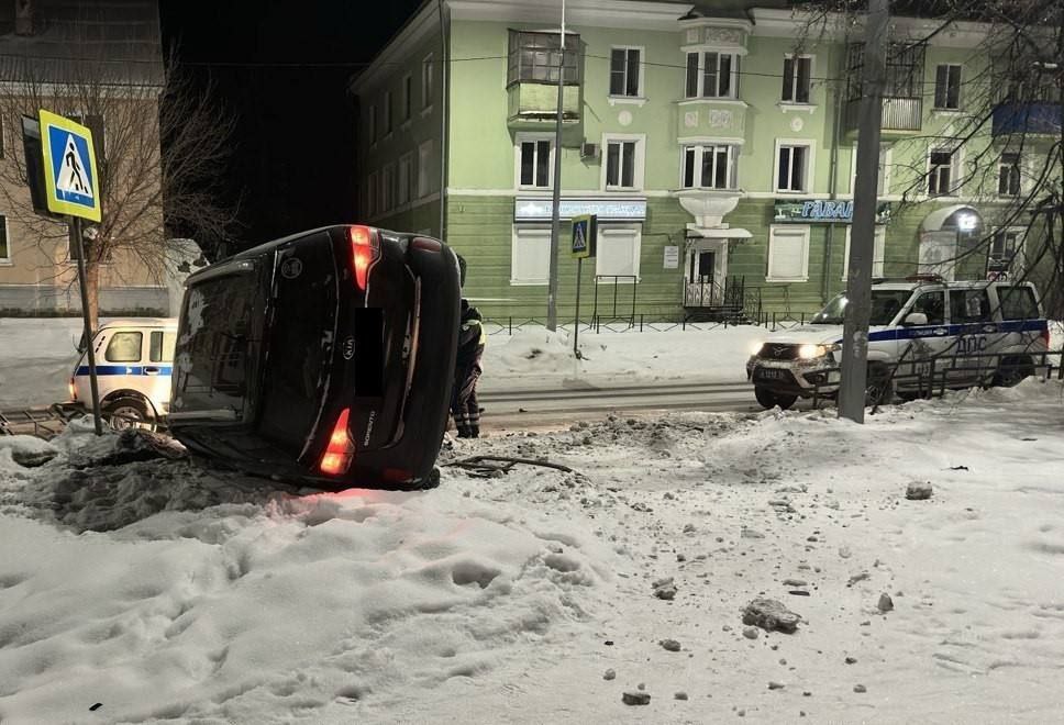 В Чебаркуле пьяный бесправник на KIA перевернулся при попытке скрыться от погони