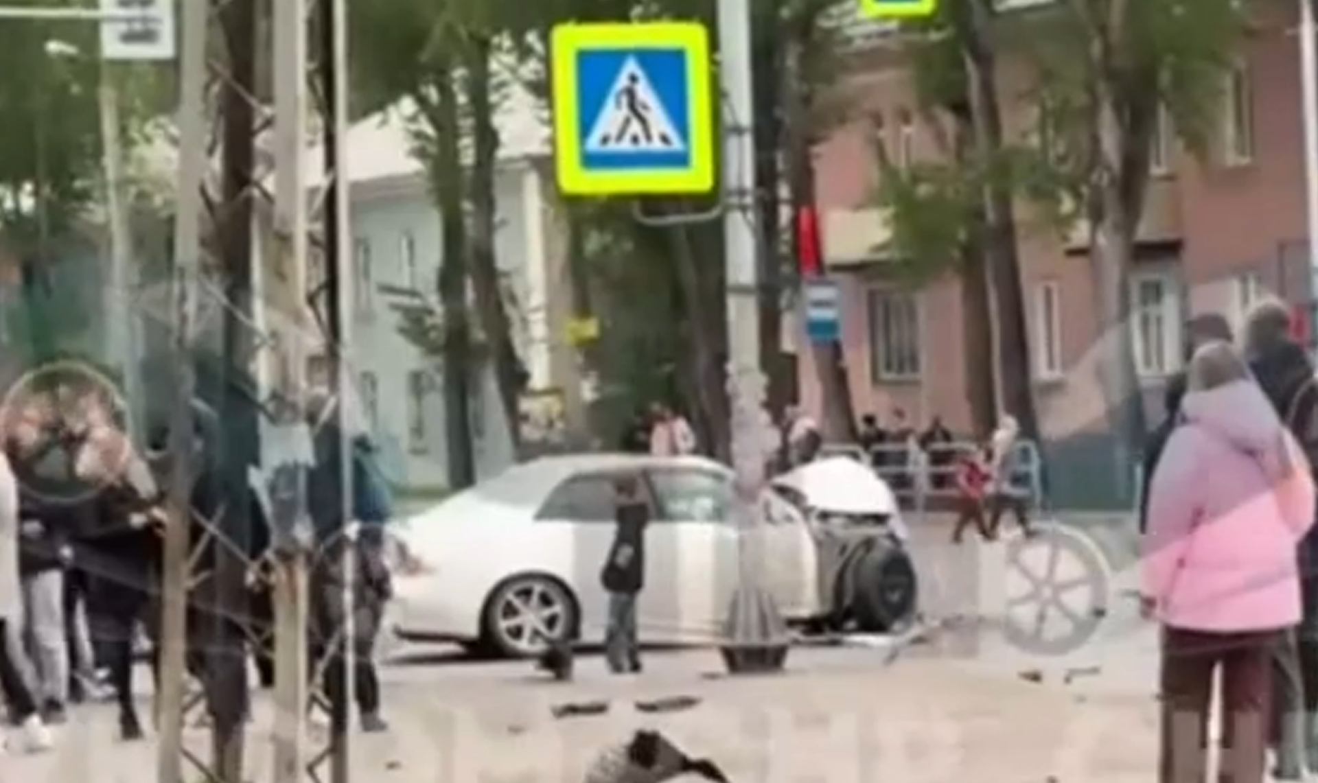 По словам очевидцев, Kia пытался проскочить на желтый, а то время как Lexus начал движение на «зеленый». В результате столкновения Kia выбросило на тротуар, где находились люди. Информация о пострадавших уточняется.