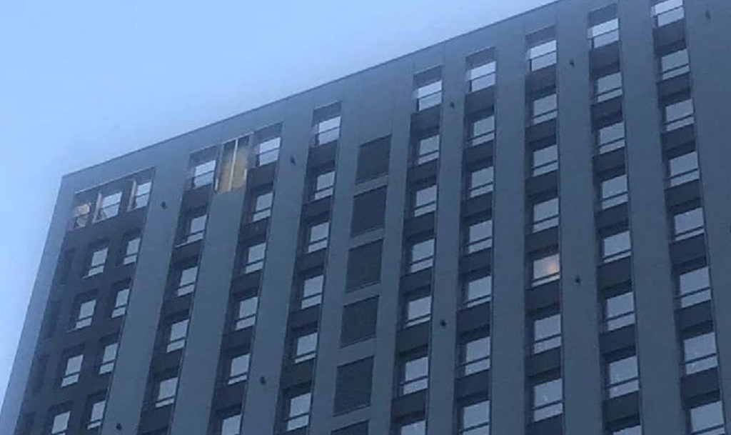 Обшивка здания приземлилась на детской площадке