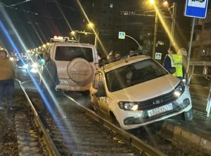 На ЧТЗ автомобилист выехал на трамвайную остановку