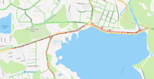 Гигантская пробка на Шершнях. Десятки автомобилей стоят в заторе на улице Лыжных батальонов и плотине