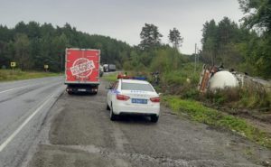 На трассе М-5 под Юрюзанью перевернулся грузовик с аммиаком