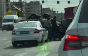 В Челябинске на пересечении Молодогвардейцев и проспекта Победы произошло ДТП с переворотом