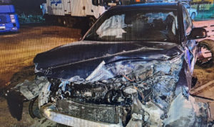 Чуть не убил себя и пассажиров. На Меридиане каршеринговая машина с пьяным водителем влетела в столб и загорелась