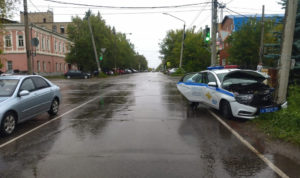 В Каслях автомобиль ДПС столкнулся с легковушкой и врезался в столб