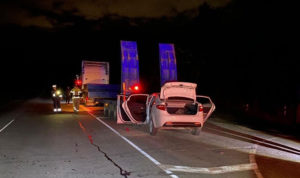 На автодороге Меридиан машина повисла на дорожном разделителе