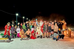 Южноуральские моржи встретили Новый год ночным заплывом в проруби